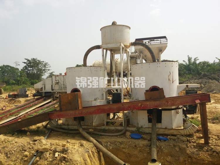 離心式選礦機是現階段全新的一種重力選礦機器設備,全自動排礦重力離心式選礦機機器設備的基本原理是運用向心力來擴張礦物質顆粒物的作用力來使重顆粒物和輕顆粒物分離出來。離心式選礦機重要的構件是一個錐型的聚集錐,離心式選礦機由電動機推動高速運轉并由充壓的反沖力水包圍著。進到離心脫水機篩分的化學物質一般 是水泥球磨機碾磨過的礦物質或是水力旋流器的溢流式煤漿,煤漿從聚集錐的上方被引入到聚集錐的底端,聚集錐的內部有一排排肋狀物質產生的凹形槽,聚集錐轉動造成的向心力會將礦物質甩向凹形槽,但因為凹形槽中的向外噴涌的反沖力水的用途,僅有重礦物質顆粒物克服反沖力水的摩擦阻力一直滯留在凹形槽內產生鈦精礦,輕礦物質因遭受的向心力較小,難以克服反沖力水的用途,則被反沖力水沖破凹形槽并在持續引入的流水的推動下從聚集錐上方溢流式出去進而變成尾礦庫。